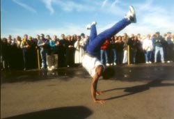 Acrobats? Entertainers? You bet! Lots of them. The very best are the acrobats who perform right in front of the gangway to the Statue of Liberty boats. In dry weather, winter or summer, these talented acrobats flip, tumble, and jump over one another without any protection, to the delight of the tourists lined up to board the ferry.